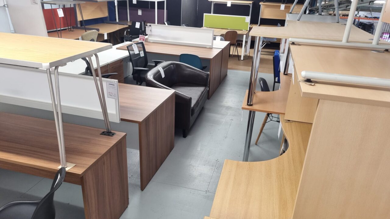 We have a comprehensive range of second hand office furniture in our large pre-loved showroom at Stafford Park, Telford.